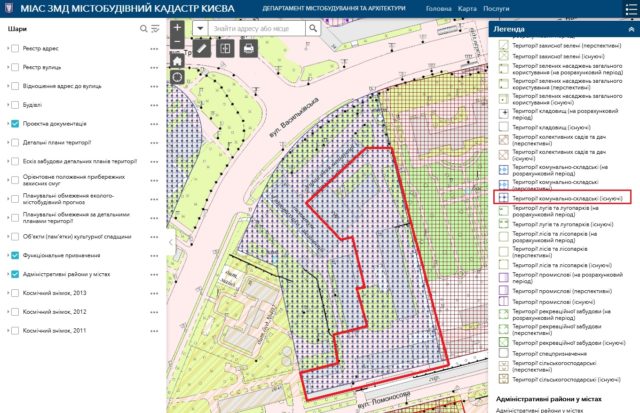 Відповідно до Генплану м. Києва ділянка належить до комунально-складської території, де будівництва житла не дозволяється.