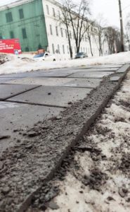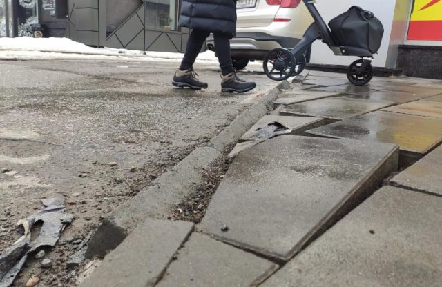 Підрядник у снігопад зробив біля СБУ новий тротуар за 9 мільйонів, і той відразу розвалився (фото)