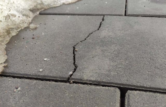 Класти нову плитку біля СБУ почали у листопаді й продовжили, коли випав сніг. Робітники працювали на морозі й поспішали завершити роботи до Нового року, що негативно і вплинуло на якість робіт.