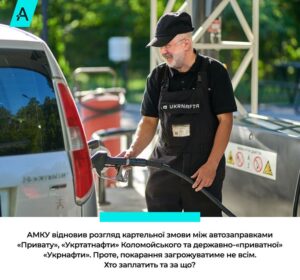 АМКУ відновив розгляд картельної змови між автозаправками «Привату», «Укртатнафти» Коломойського та державно-«приватної» «Укрнафти». Проте, покарання загрожуватиме не всім, прогнозує «Ліга антитрасту».