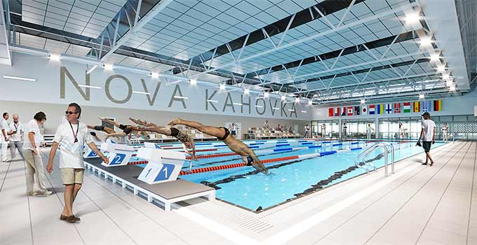 До кінця 2023 року збудують триповерховий Центр Олімпійських видів спорту «Н2О Нова Каховка» пропускною спроможністю 379 осіб/год. по пр. Дніпровському, 18-а.