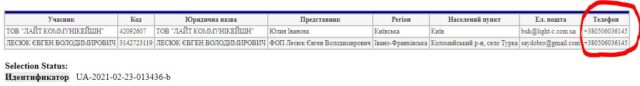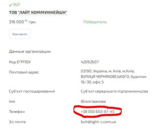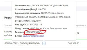Єдиним конкурентом був зареєстрований торік ФОП Лесюк Євген Володимирович із Франківщини, який вказував той же номер телефону +380506036145, що й переможець.