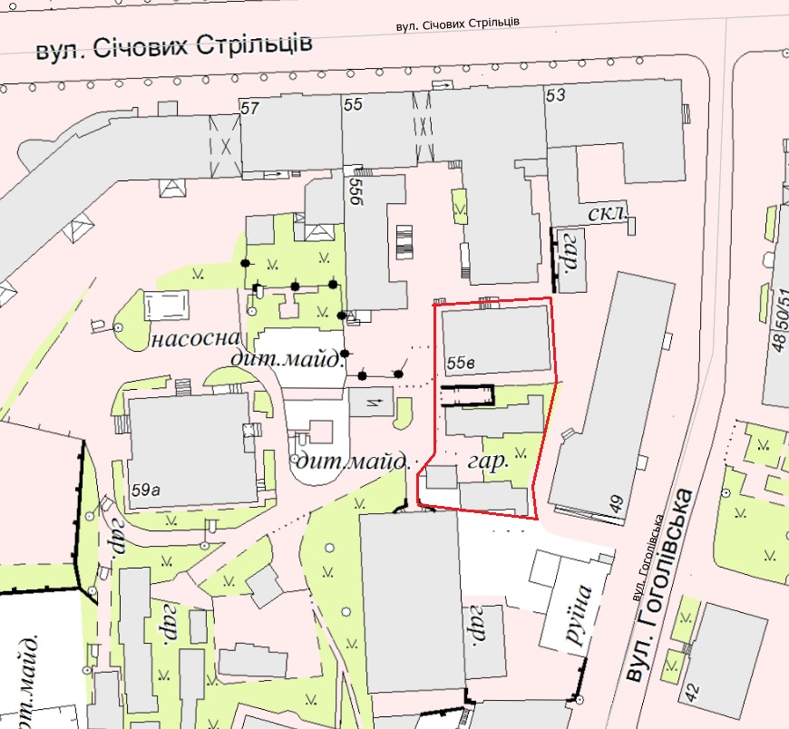У грудні 2020 року земельну ділянку площею 0,12 га по вул. Січових Стрільців, 55-В (Д) зареєстрували як приватну власність Євгена Кірєєва із Павлограда Дніпропетровської області. Підставою стало рішення Індустріального районного суду м. Дніпропетровська від 17 січня 2017 року.