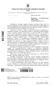 Відповідь Світлани Шаталової, заступниці міністра Максима Степанова, датована 22 лютого 2021 року, а надійшла 9 березня 2021 року. Там було сказано, що МОЗ є головним розпорядником бюджетних коштів та відповідальним виконавцем бюджетних програм, а одержувачем цих коштів є «Медзакупівлі». МОЗ затверджує номенклатуру товарів, що закуповуватимуться зокрема за бюджетною програмою «Забезпечення медичних заходів окремих державних програм та комплексних заходів програмного характеру», та своїм наказом затверджує медико-технічні вимоги до товарів, які є предметом закупівлі.