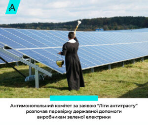 Антимонопольний комітет за заявою «Ліги антитрасту» розпочав перевірку державної допомоги виробникам зеленої електрики і до 1 червня цього року має остаточно визначитися, чи порушуватиме він справу.