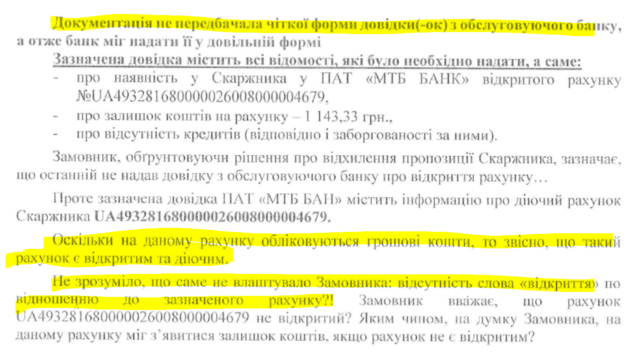 5. Учасник подав скаргу в Тендерну колегію АМКУ, бо на його думку довідка про наявність рахунку у банку означає, що той рахунок таки був відкритий, а не впав з космосу: