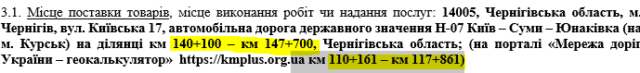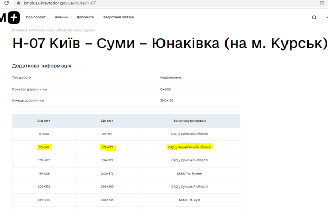 Як пояснив «ДБТ №2, м. Гомель», «дійсно маршрут транспортування було пораховано на ділянку Н-07 у Сумській області, а саме до середини ділянки– км 201+850 – що «повністю відповідає предмету закупівлі, технічному завданню та вимогам технічної документації». Крім того, розташування цієї ділянки в іншій області підтверджується публічною інформацією на онлайн-ресурсі «Укравтодору», де на балансі САД у Чернігівській області зазначена ділянка в межах км 35+661 – км 178+677.