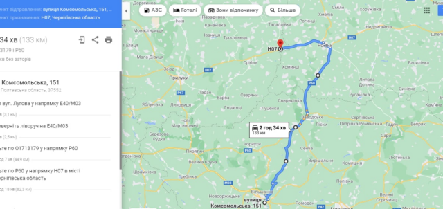 Якщо скористатись ним для пошуку ділянки км 198+550 – км 205+150 на Н-07, яку Чернігівська САД планує ремонтувати, відрізок траси знаходиметься частково в межах міста Ромни, повністю в Сумській області.