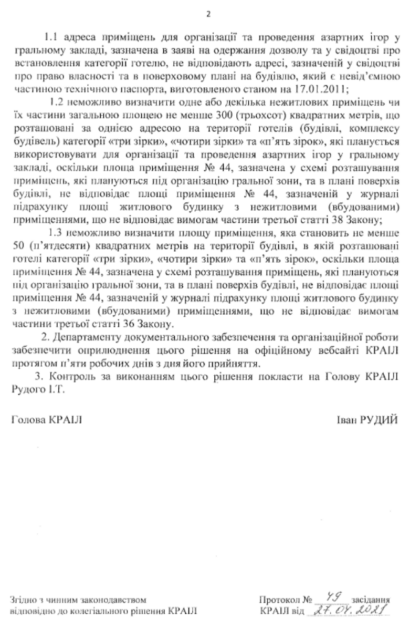 Всі ці недоліки готель має можливість виправити і повторно направити заяву для отримання дозволу на проведення азартних ігор.