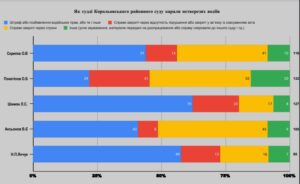 Більше справ розглянув Богунський районний суд – 935 постанов, натомість Корольовський районний суд розглянув менше – 565.