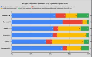 Найсуворіше карали судді Богунського районного суду Панченко Галина Вікторівна та Комнацький Олег Володимирович, разом вони розглянули 267, із яких 66% справ завершилися покаранням: 177 осіб понесли відповідальність.