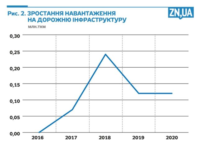 За останні п’ять років навантаження на дорожню інфраструктуру збільшилося в середньому на 14% на рік (див. рис. 2). А це передбачає аналогічне пришвидшення зношення дорожнього полотна і відповідне збільшення потреби у фінансуванні дорожньої галузі. Що швидше автотранспорт поглинатиме залізницю, то стрімкішою буде ця прогресія.