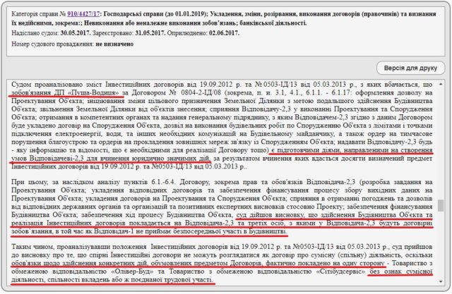 Зробити таке легше всього саме по позовах до ТОВ «Олівер-Буд» та ТОВ «Сітібудсервіс», бо вже є рішення суду, при прийнятті якого досліджувалися відповідні договори, і судом «встановлений» факт їх відповідності вимогам законодавства. А ДП «НДВА «Пуща-Водиця» в тих справах була стороною, ба більше – доводила в суді, що нічого не порушує.