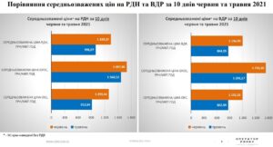 В перші десять днів червня середньозважена ціна електроенергії на ринку «на добу наперед» зросла на 22% у порівнянні з травнем – до 1 339 грн/МВт*год (всі ціни вказані без ПДВ).
