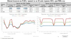 Загалом, за 10 днів червня 2021 обсяг купівлі-продажу електроенергії на РДН склав 781 609 МВт*год, що більше ніж за 10 днів травня 2021 на 7%. На ВДР загальний обсяг купівлі-продажу електроенергії за 10 днів червня зменшився на 24% і становив 194 799 МВт*год.