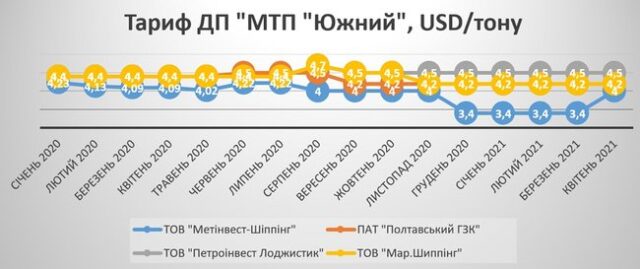 Пояснення цьому досить просте – для «Полтавського ГЗК» Жеваго тариф порту «Южний» чомусь в 2020 році став на 25% більший ніж для «Метінвест-Шіппінг» Ахметова. Точніше, саме для Ахметова ставку знизили, а для Жеваго – ні.