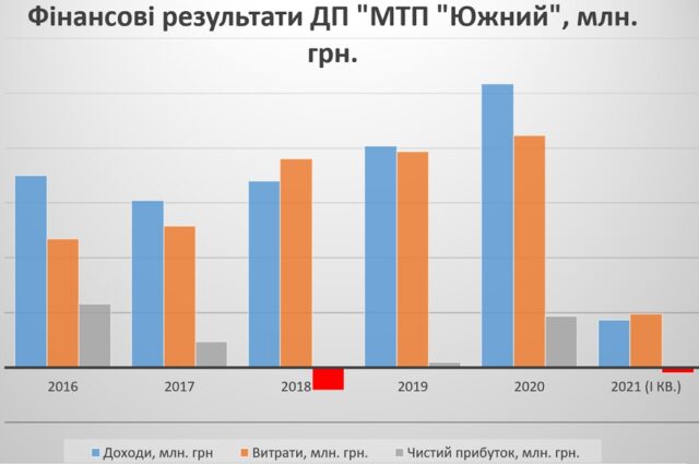 Якщо ж дивитися на результати саме ДП «Морський торгівельний порт «Южний», то в 2021 році відбулися дві негативні тенденції: зменшення обсягів перевезення і збитковий результат роботи за І квартал – після майже пів мільярди прибутку в 2020 році.