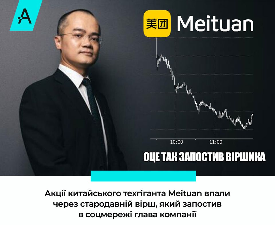 Акції китайського техгіганта Meituan впали через вірш, який запостив в соцмережі глава компанії
