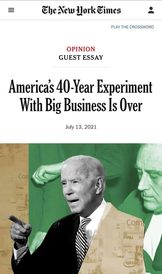 З такою назвою днями вийшла стаття в The New York Times про новий антимонопольний курс президента Байдена.