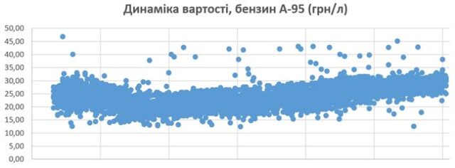 Бензин А-95 в липні 2020 року торгувався в середньому близько 20 грн/л. А окремі замовники проводили торги за цінами до 15 грн/л. Цього року ціни сягнули 30 грн/л. А деякі замовники проводили торги з цінами понад 35 грн/л.