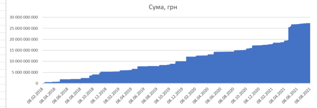 У 2021 році видатки різко зросли – за неповні вісім місяців вже виплачено 10,48 млрд грн.