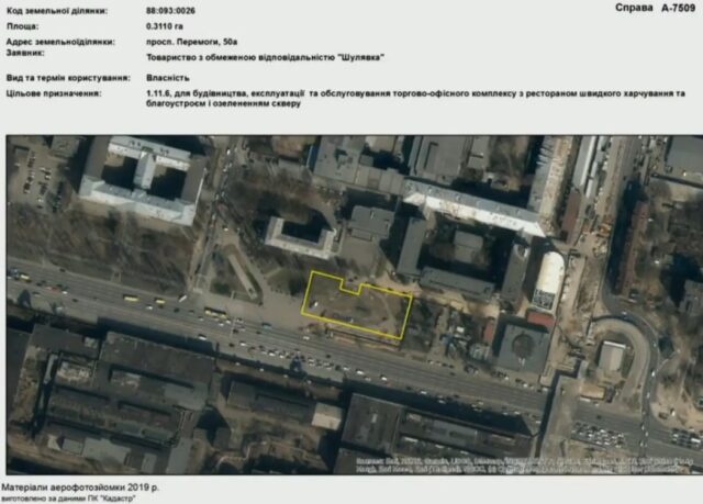 Нагадаємо, що на ділянці площею 0,31 га на просп. Перемоги, 50-А, яка фактично є частиною скверу «Слава танкістам» поблизу ст. м. «Шулявська», без відповідних дозвільних документів розпочате будівництво житлового будинку. На сьогодні у забудовника відсутні будь-які вихідні дані і дозволи на роботи. Зокрема, щодо містобудівних умов та обмежень він судиться з КМДА.