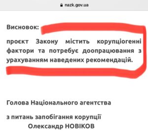 Разом з тим, в новині партії зазначається, що в «інших важливих статті законопроекту № 5655» корупційні ризики відсутні. При цьому вказують на пункт про «підходи до визначення самочинного будівництва», який якраз був розкритикований НАЗК через прив’язку поняття самочинного будівництва до виконання вимог МУО, а не містобудівної документації.