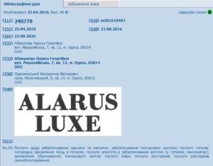 Знак «Alarus Luxe» був зареєстрований у 2018 році. Його власником значиться Лариса Абакумова, а адресатом – Володимир Ладиженський.