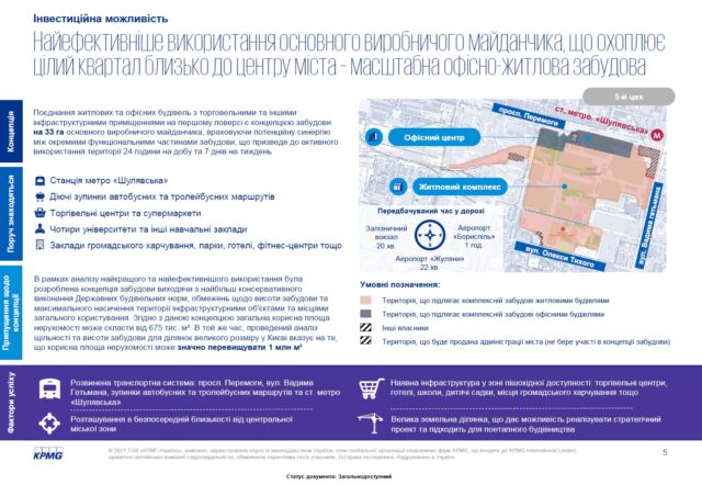 Відповідно до Генерального плану Києва, ділянка заводу на Шулявці знаходиться в промисловій зоні, тож будівництво житла там прямо заборонено.