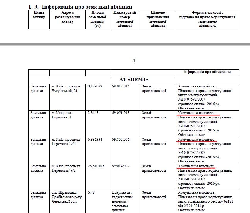 Земельні ділянки, якими користується АТ «ПКМЗ» на Шулявці, не належать Державі – вони знаходяться в комунальній власності (належать територіальній громаді Києва), АТ не оформляло на них право користування у відповідності до вимог незалежної України і навіть в Державний земельний кадастр ці ділянки не внесені.