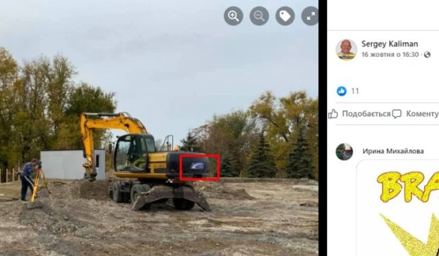 На фото Калімана можна бачити принаймні один екскаватор з логотипом «АБЗ Промбуд», чию техніку вказало серед орендованої ТОВ «Мелсіті».