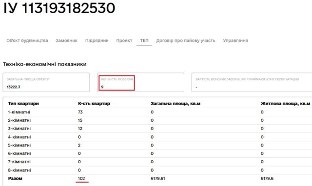 Так само 9 поверхів зазначено у дозволі ДАБІ. При цьому кількість квартир – 102.