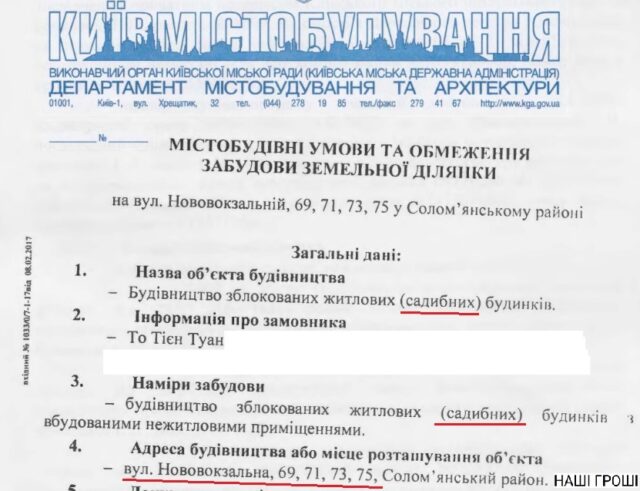 Відповідно до виданих То Тієн Туану у лютому 2017 року містобудівних умов та обмежень, забудовнику дозволено було будівництво зблокованих житлових (садибних) будинків.