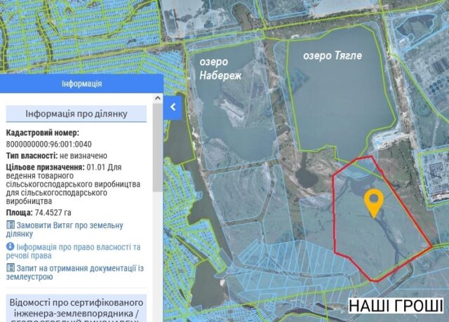 Йдеться про 74,4 га біля озера Тягле в Дарницькому районі, на які право постійного користування оформило ТОВ «Агрофірма Зодіак».