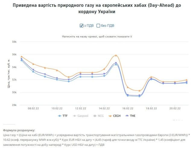 11 лютого середньозважена ціна газу по всіх умовах оплати на «Українській енергетичній біржі» становила 31,7-32,4 грн. за куб. м. Пізніше ціна максимально збільшувалася 15 лютого до 35,8 грн. за куб., після чого пішла вниз.
