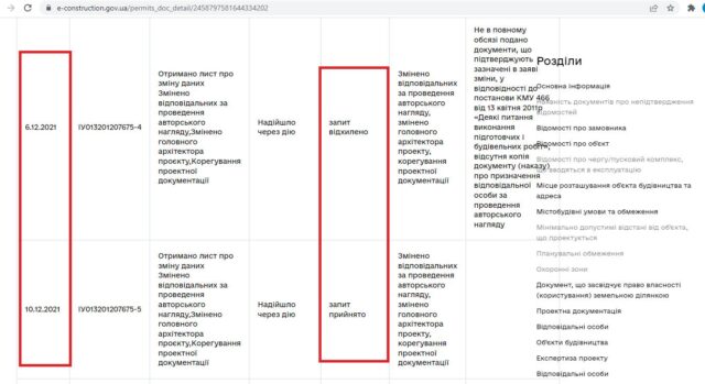 Для затвердження нового проекту в ДІАМ зайшли дві заявки: 6 грудня – відмовлено, а заявка від 10 грудня задоволена, і ДІАМ реєструє чергові зміни в проект.