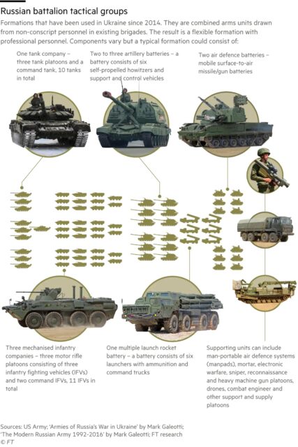 Основною бойовою одиницею армії Росії зараз є батальйонна тактична група. За оцінками США, 100 із приблизно 170 російських БТГ, призначених для швидкої адаптації і які мають високу вогневу потужність, були розгорнуті в Україні.