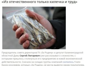 Голова ради директорів рибопереробної групи компаній «За Родіну» (Калінінградська область РФ), депутат Калінінградської обласної Думи Сергій Лютаревич в інтерв’ю радіостанції «Балтік Плюс» розповів про складнощі після введення економічних санкцій на Росію.