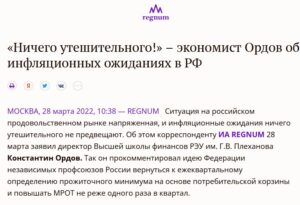 Ситуація на російському продовольчому ринку напружена, і інфляційні очікування нічого втішного не віщують. Про це кореспондентові ІА REGNUM 28 березня заявив директор Вищої школи фінансів Російського економічного університету ім. Г.В. Плеханова Костянтин Ордов.