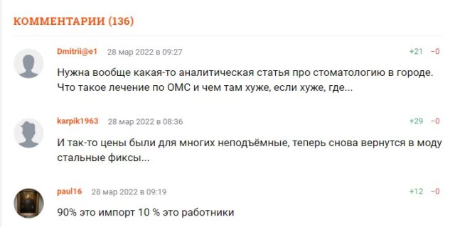 В коментарях до новини читачі пишуть, що і раніше ціни стоматології в Єкатеринбургу були не по кишені багатьом, а тепер люди повернуться до стальних фікс.