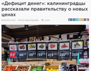 Мешканці Калінінградської області (РФ) у пабліку уряду Калінінградської області «ВКонтакті» поскаржились владі, що через зростання цін людям перестало вистачати грошей на найнеобхідніше.