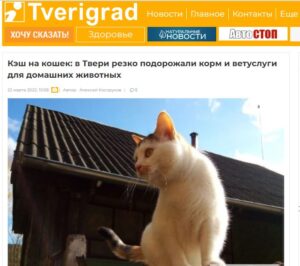 За місяць після нападу Росії на Україну російські власники котів і собак зіткнулись із ростом цін на всі зоотовари від кормів до наркозу. Про це пише видання «Tverigrad».