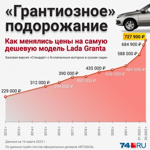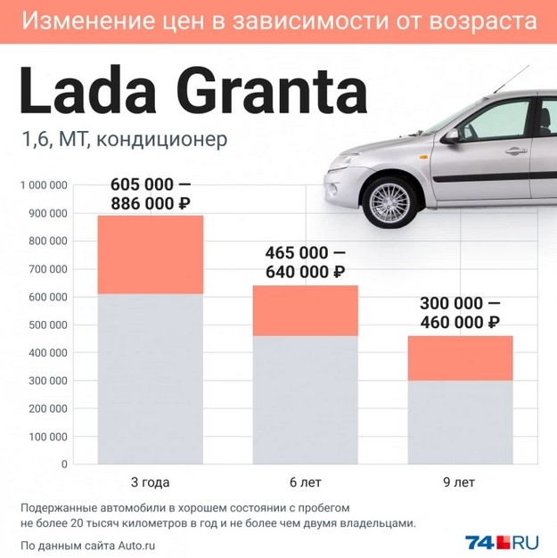 Ось, наприклад, ціни на Lada Granta різних років випуску: якщо порівняти з інфографікою нижче, то видно, що в деяких випадках власники можуть продати машину дорожче, ніж купували спочатку.