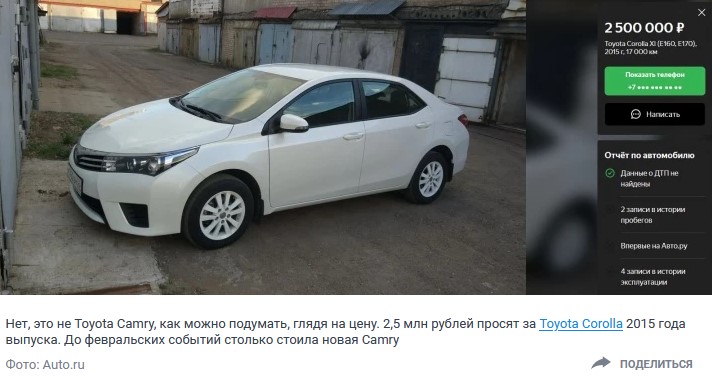 Або продають Toyota Corolla 2015 року випуску за ціною нової Toyota Camry (ціна станом до початку війни).