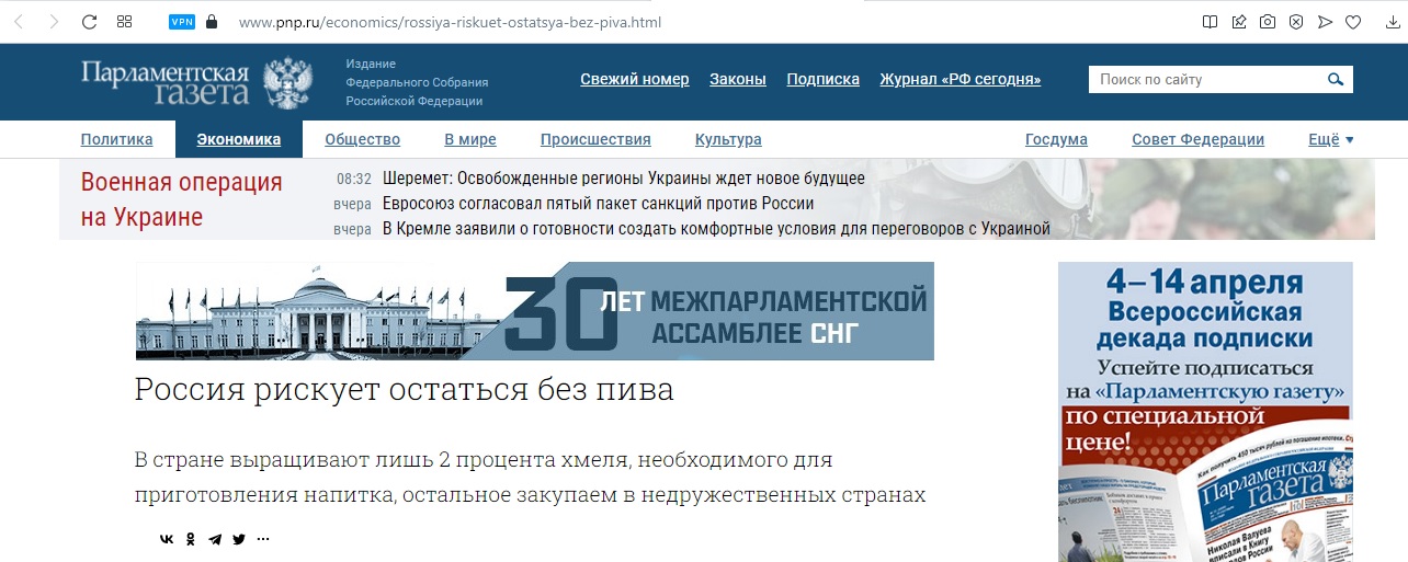Як пише «Парламентская газета», головні імпортери хмелю входять до списку «недружніх країн», і можуть в будь-який момент зупинити його поставки. А без нього хмелю не зварити.