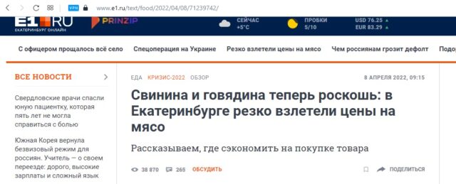 «В підвищенні цін на м’ясо винні як завжди Байден і Зеленський, вони ж винні в підвищенні цін на будматеріали, квартири, машини, туалетний папір, на письмовий папір… Навіть рублт, що зміцнив, нам не в допомогу», – написав в коментарях читач.