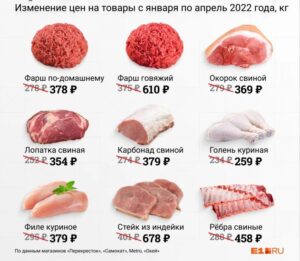 Видання порівняло чеки з місцевих магазинів за січень та квітень. І виявилося, що, наприклад, що яловичий фарш коштував в січні 278 рублів за кілограм, а тепер його ціна 610 рублів. Це дорожче вдвічі. А свинячий карбонад тепер коштує 379 рублів, хоча три місяці назад він був дешевший на сотню рублів. Ребра подорожчали майже вдвічі.