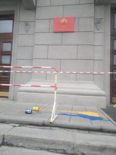 9 квітня ганок мерії Новосибірська залили синьою та жовтою фарбами. Це зробив 41-річний директор приватної котельні Станіслав Карзанов.