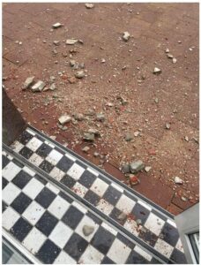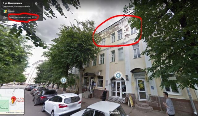 За даними «Google Maps», штукатурка з цієї будівлі обсипалась ще в липні 2019 року.