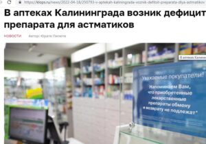 «Сказати, що у Калінінграді немає «Пульмікорту», ​​не можна. Певний обсяг ліків надходить, але не дуже регулярно. Складнощі пов’язані з порушенням логістики та взаєморозрахунків. Найближчим часом до аптек надійде російський аналог, виготовлений із сировини, виробленої на заводі в Польщі», — уточнив Ягудвіг.